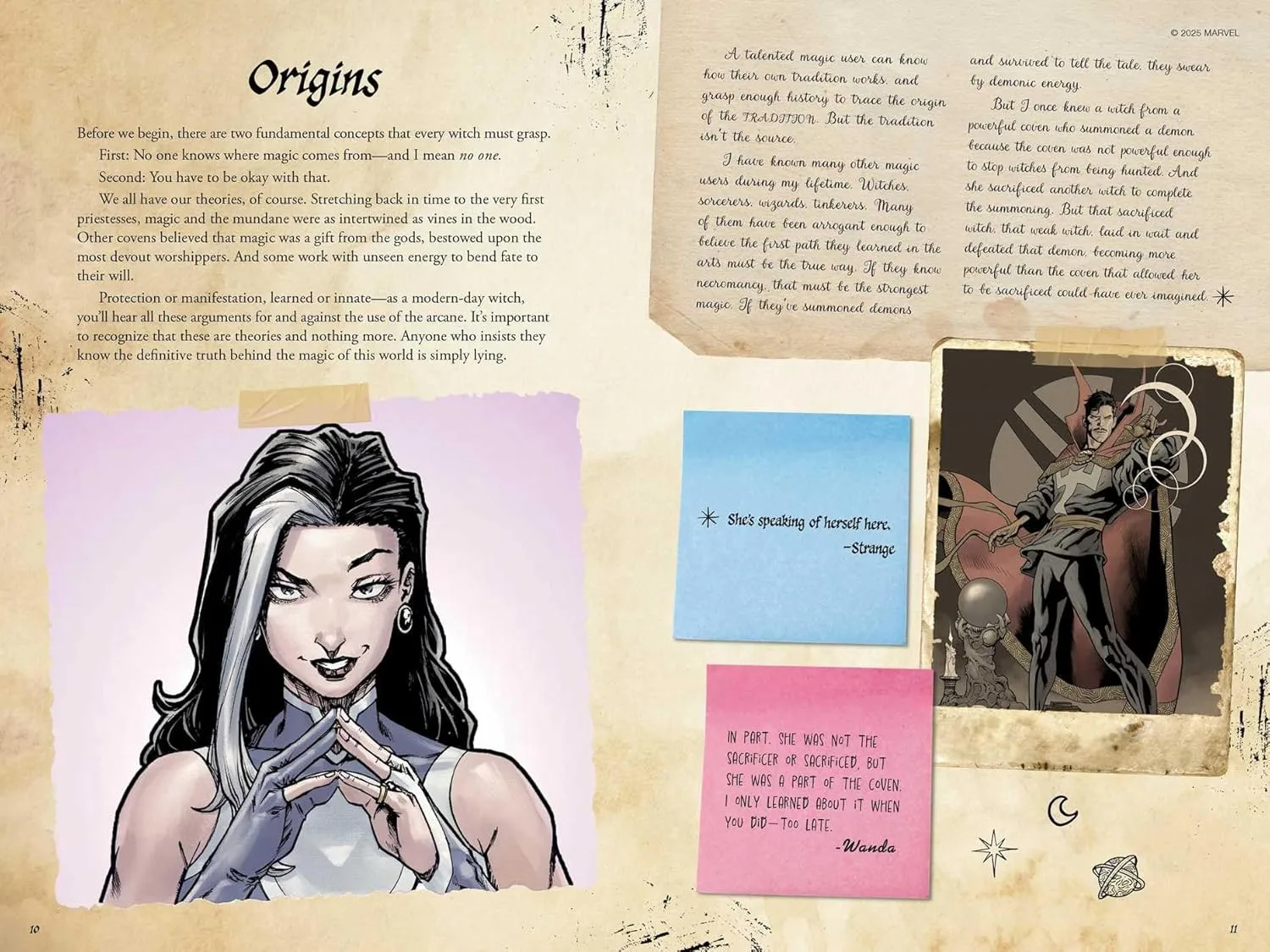 It begins with the origins of magic (or better yet, discloses that we don’t actually know where magic comes from) and explains how humans came to harness it. It’s not just Agatha who journey’s into the mysticism and beyond; the book contains myriad notes from fan-favourite characters such as Doctor Strange and the Scarlet Witch.