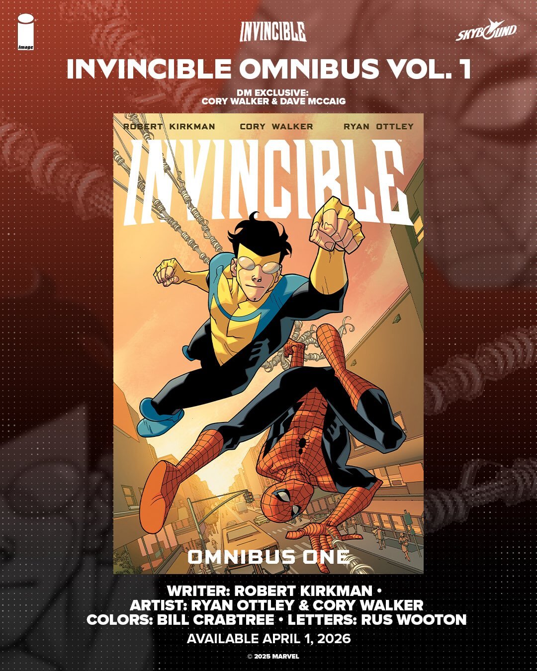 LOS ANGELES 09/15/2025 — The highly anticipated Invincible Omnibus Vol. 1 hardcovercollecting issues #0-47 of the groundbreaking comic book series Invincible from creative visionaries Robert Kirkman (The Walking Dead, Void Rivals), Cory Walker (Science Dog), and Ryan Ottley (Invincible Universe: Battle Beast)—will include the iconic Marvel Team-Up #14 for the first time ever. It is slated to hit shelves in April 2026 from Image Comics/Skybound.