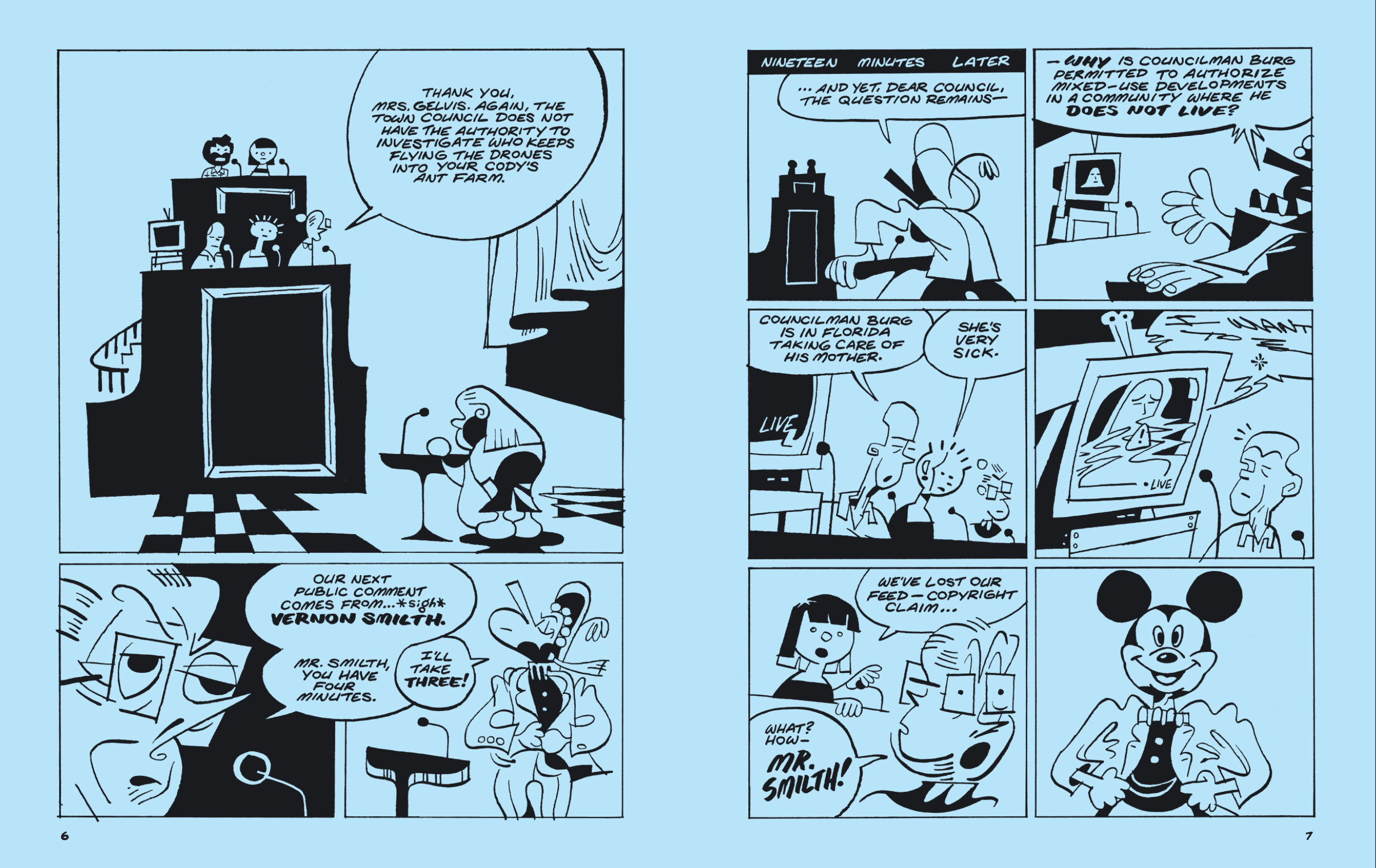 Published by Fantagraphics, Max Huffman’s Dogtangle is unlike most graphic novels you’ll read. It’s a refreshing book, showcasing a variety of gorgeous cartoonist styles, not least abstraction, cubism, and mid-century modernism. Moreover, the story itself is eclectic but also so relevant to our times, fuelled heavily by the mistrust of corporate leadership.