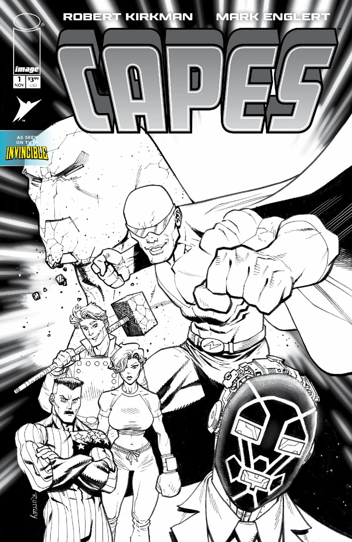 Skybound and Image Comics unveiled a new lineup of covers for the long out-of-print and very much in-demand comic book series Capes. Over 20 years since its debut, Capes returns with a special remastering, featuring new art and dialogue from the original creative team of Robert Kirkman (Invincible, The Walking Dead, TRANSFORMERS) and Mark Englert (Teenage Mutant Ninja Turtles, Hack/Slash).